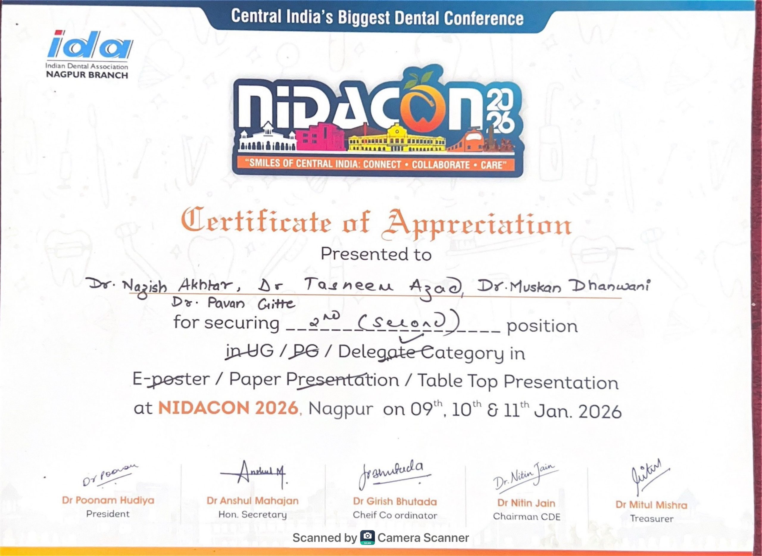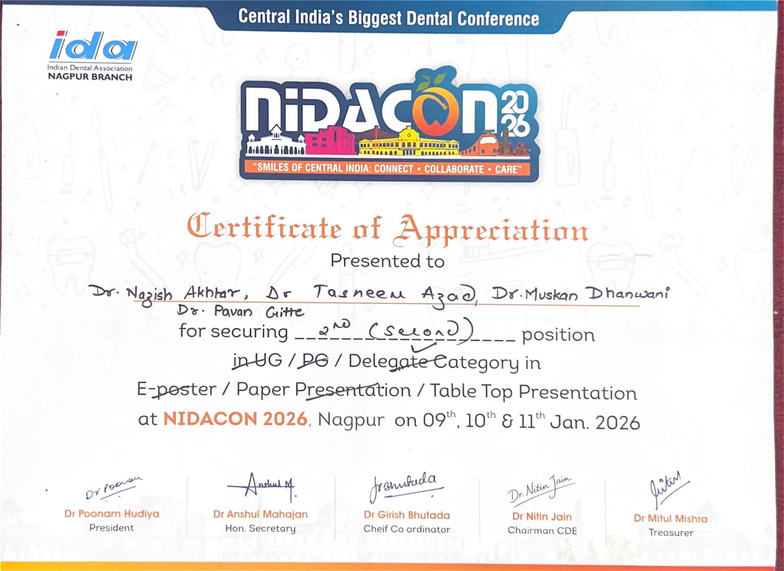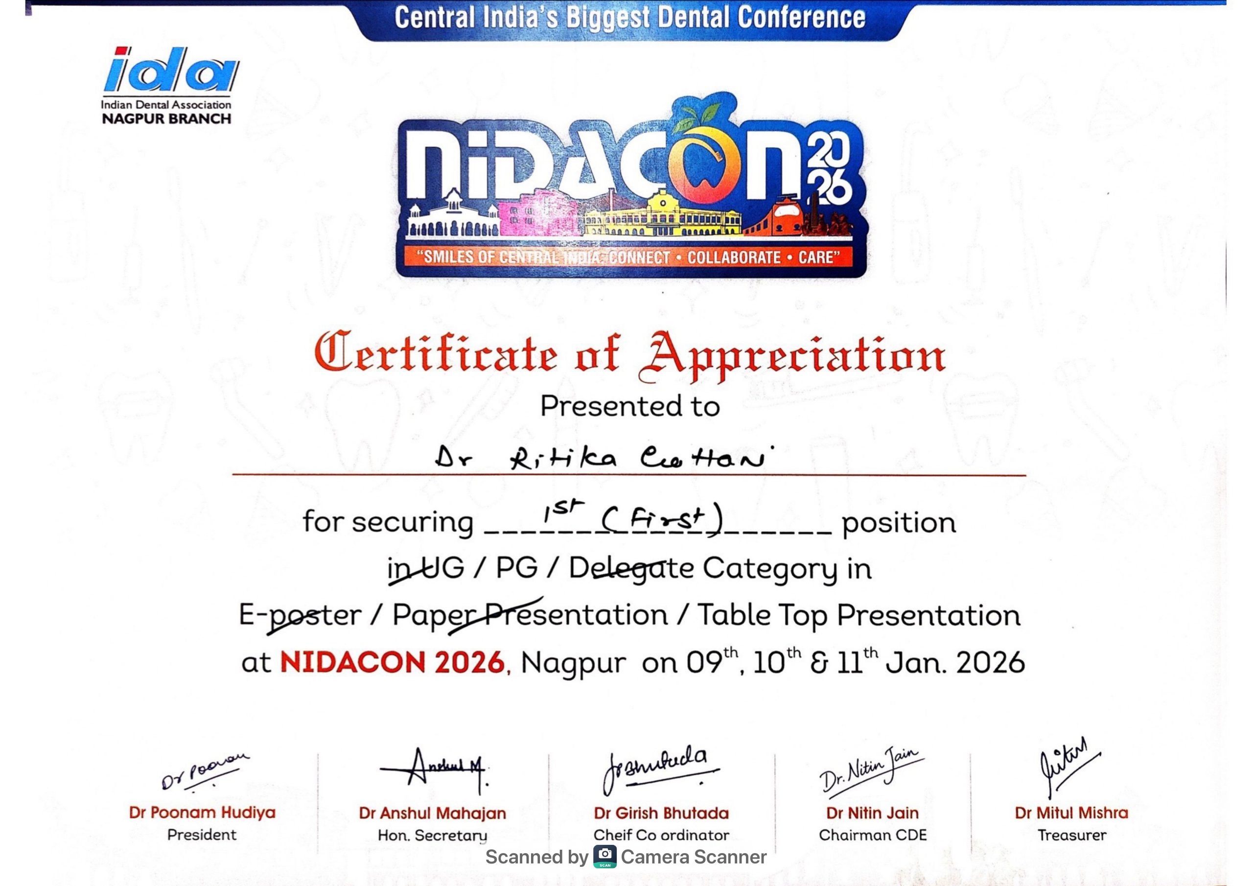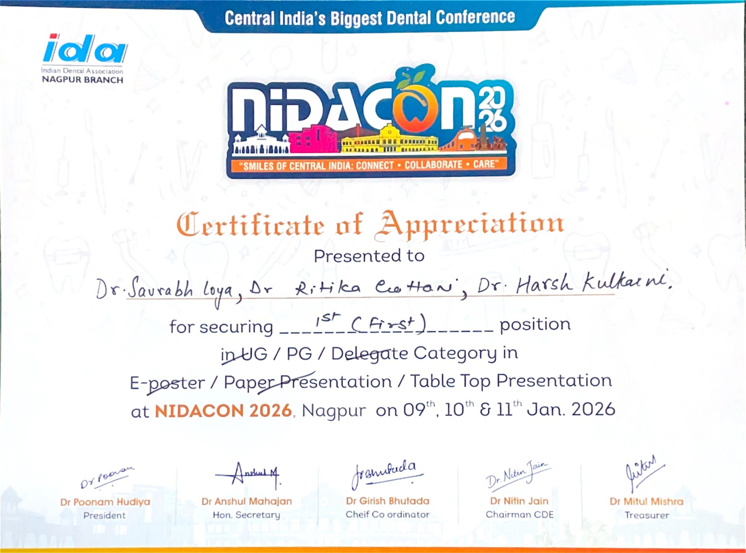At the very outset, I would like to express my heartfelt gratitude to my college RDDC NAGPUR. The college has helped me acquire hands on experience in every clinical aspect along with great knowledge of subjects, in all providing a holistic educational approach. The staff, infrastructure and amenities are all set to push the envelope and makes one ready for their professional journey.