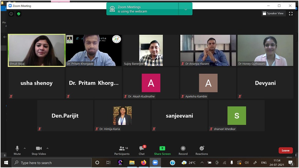 The second lecture titled “Essentials in Clear Aligners” was conducted on 24 th july 2021. The speaker for the session was Dr.Shruti Bajaj, 2003 batch alumni of our esteemed institute and currently working as an Orthodontist at Abbeville Dentistry, Lubbock, Texas. The session was moderated by Dr.Honey Gurbaxani, 2007 batch alumni, private practitioner in Nagpur as well as PhD scholar.