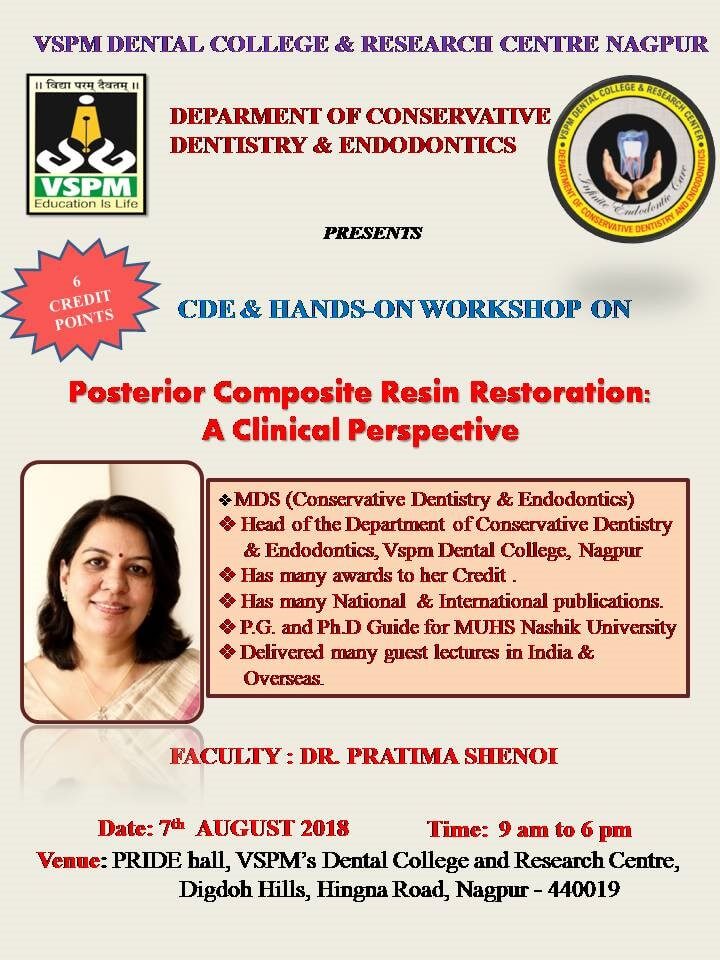 A CDE programme on ‘Posterior Composite resin restorations- A Clinical perspective’ was conducted by department of Conservative Dentistry and Endodontics on 7th August 2018 from 9 am to 6 pm. The lecture and hands-on was mainly focused on general considerations of Composite restorations, case selection, art of shade matching, isolation of teeth, clinical steps for composite restorations, finishing procedure etc. A total number of 50 participants took part in the CDE programme which contained 6 MSDC CDE points.