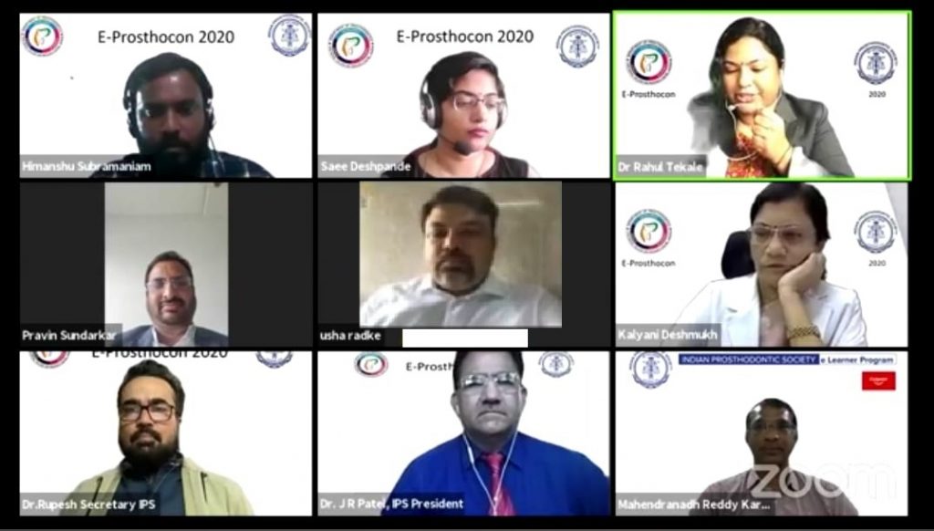 Department of Prosthodontics, VSPM Dental College and Research Centre has been organizing the ‘Prosthocon’ since 5 years to help the postgraduate students from the region to gain knowledge from experienced faculties of national repute. Even in the difficult times of the Covid -19 pandemic, Department of Prosthodontics, VSPM Dental College and Research centre in association with Indian Prosthodontic Society, Nagpur branch organized a fifteen day webinar series ‘E – PROSTHOCON 2020’ which was the brainchild of Dr. Usha Radke Dean, VSPM DCRC and Organizing Chairman, from 3rd to 17th August 2020 to avail a learning platform to the post graduate students and faculties all over the globe. The event was inaugurated on the 3rd August by the Chief Guest, Dr. Mahendranath Reddy, Chairman for Prosthodontic Research in the esteemed presence of Guest of Honour, Dr. Ashish Deshmukh, Working Chairman VSPM Academy of Higher education, Dr. J.R.Patel, Hon’ble President of Indian Prosthodontic society, Dr. Rupesh P.L, Hon’ble Secretary of Indian Prosthodontic society, Dr. Pravin Sundarkar, President IPS Nagpur branch and Dr. Saee Deshmukh, Secretary IPS Nagpur branch. The webinar series comprised of lectures by speakers of national and international repute on relevant topics like Full mouth rehabilitation, Maxillofacial Prosthodontics, Minimally invasive esthetic restorations, Management of Temporomandibular disorders, Removable and fixed Prosthodontics and Research in Prosthodontics. All sessions were moderated by knowledgeable and experienced moderators and at the end of each session all questions and doubts of students were cleared in the question and answer session. The series got an overwhelming response in terms of about 1500 registrations, about 17000 views on face book till date and around 2500 viewership. Dr. Usha Radke, Organizing Chairman acknowledged the efforts taken by the Chief coordinator Dr. Rajlakshmi Banerjee and all staff from the Department of Prosthodontics, VSPM DCRC Dr. Neelam Pande, Dr. Saee Deshmukh, Dr. Tushar Mowade, , Dr. Anuj Chandak, Dr. Akhil Rathi, Dr. Priti Jaiswal, Dr. Rahul Tekade, Dr. Jayashree Joshi, Dr. Jaishree Chahande, Dr. Anita Kahar and members of IPS Nagpur branch Dr. Pravin Sundarkar, Dr. Harshwardhan Arya, Dr. B. K. Motwani, Dr. Arun Khalikar, Dr. Jaykumar Gade, Dr. Anand Raj, Dr. Suryakant Deogade, Dr. Parag Bhoyar, Dr. Yogesh Ingole, Dr. Dipti Lambade, Dr. Neha Garg, , Dr. Mohsin Quazi and Dr. Vinay Kothari for the successful conduction of the programme. The team is gearing up to host the 48th IPS National conference in December 2020, which is going to be the first ever virtual conference in the history of any dental specialty conferences. The promotional video for the conference and the 2nd volume of the ‘Journal of Prosthetic Rehabilitation’, official publication of the IPS Nagpur branch was also released in the inaugural ceremony. The Chief Co-ordinator for ‘E – PROSTHOCON 2020’, Dr. Rajlakshmi Banerjee, Editor, IPS Nagpur branch thanked all the co-coordinators, moderators and speakers for making the webinar series a huge success.