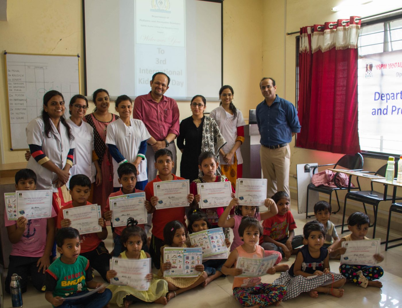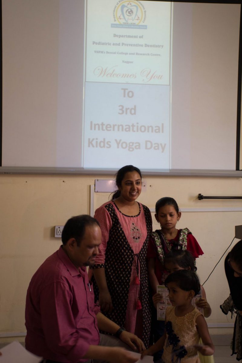 International Kid’s Yoga Day was organized by Department of Pediatric and Preventive Dentistry, VSPM Dental College and Research Centre, Nagpur on 7th April 2018. It was a global event which was first started last year by Ms. Teresa Power, author of a famous book – ABC of yoga for kids. More than 45 countries and 45,000 children were supposed to perform yoga on the same day and same time.