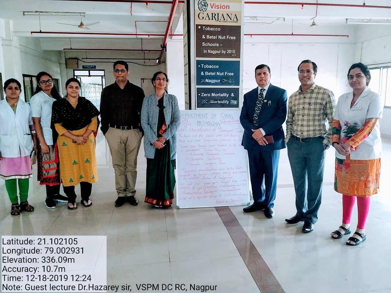 This lecture was organised by Department of Oral and Maxillofacial Pathology VSPM DCRC and which was inaugurated by Dr. Usha Radke, Dean & Dr. Ramakrishna Shenoi, Vice Dean & was coordinated by Dr. Alka Dive, Head of the Department. Session was attended by 4 staff members, 3 PGs, 37 Interns & 97 IIIrd BDS students.