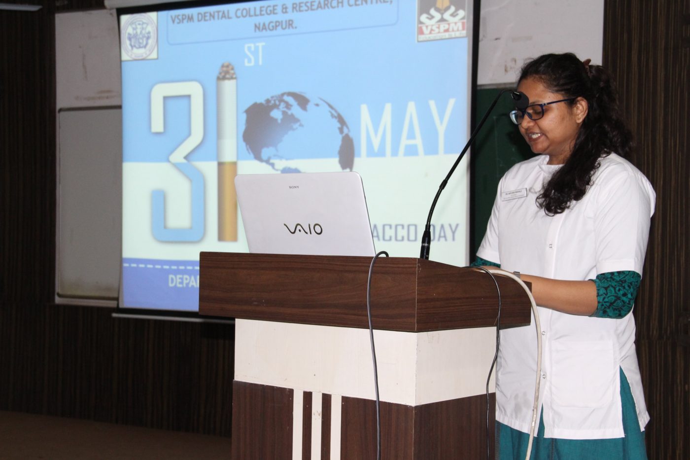 On the occasion of “WORLD NO TOBACCO DAY’’, Health exhibition was organized at VSPM Dental college, Hingna, Nagpur on 31st May 2018. The exhibition was inaugurated by the Dean of VSPMDCRC; Dr. Usha Radke. Staff members, post-graduate students, interns and under-graduate students of the Dental College were also present.