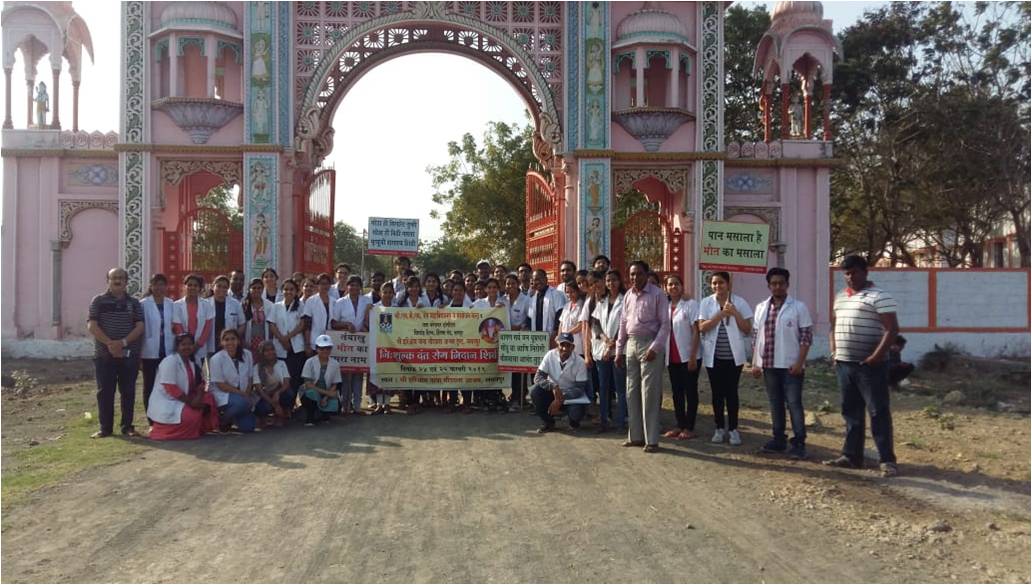 the camp was inaugurated on 24th February at the hands of shri omprakashji agrawal president of ashram. After inaugural programme a skit was performed by NSS volunteers on “tobacco Hazards” to make the village people aware about hazards of tobacco and Ghutkha,Pan. etc.chewing., Dental check up was done in which about 150 patients were screened and the primary treatments were given.